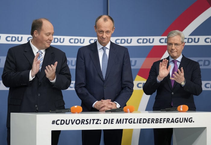 BERLÍN – Los miembros del partido de oposición más grande de Alemania, la Unión Demócrata Cristiana de centro derecha de la ex canciller Angela Merkel, han elegido al prominente conservador Friedrich Merz como su nuevo líder, dijo el partido el viernes.